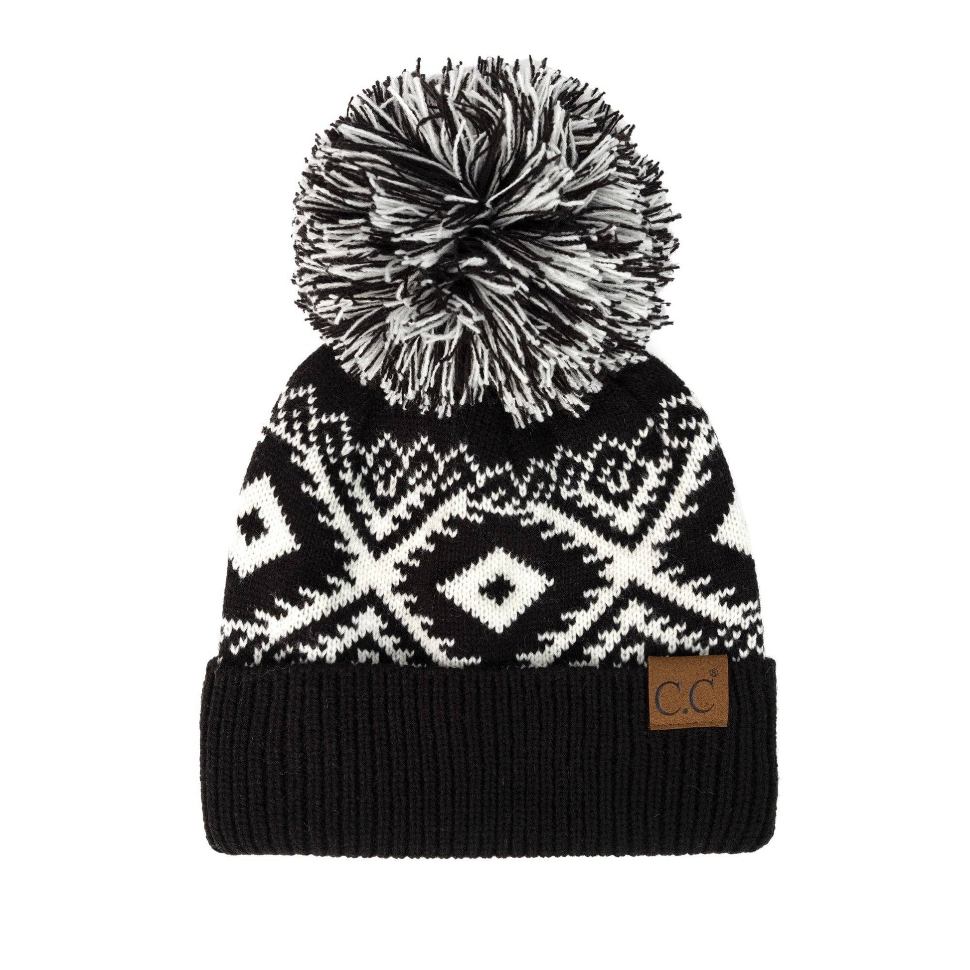 Stay stylish all season in the CC western print beanie. Made from 100% acrylic, this beanie will keep you warm and comfortable no matter the weather. Plus, with its yarn pom and authentic cc quality, you can trust you're getting a great product. Don't forget to add some extra flare with its bold western print! Product features: Yarn pom Aztec pattern Authentic C.C. branding and quality Sizing: One size fits most C.C. tag || fits size youth 5/6 - adult || (head circumference 20" - 24") Care instructions: Hand wash